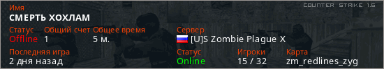 Играет на Counter Strike 1.6 сервере. Страна: РоссияПервый раз замечен 12:33 28.03.2026