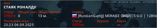 Играет на Counter Strike Global Offensive сервере. Страна: РоссияПервый раз замечен 00:32 27.08.2025