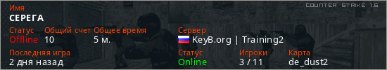 Последний раз был в сети 2 дня назад Игрок с таким ником замечен на 16 серверах