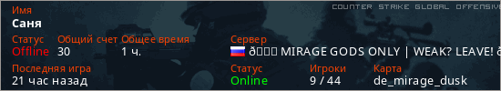 Играет на Counter Strike Global Offensive сервере. Страна: РоссияПервый раз замечен 17:03 06.06.2024