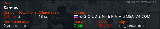 Играет на Counter Strike 1.6 сервере. Страна: РоссияПервый раз замечен 02:12 19.04.2026