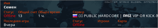 Играет на Counter Strike Global Offensive сервере. Страна: РоссияПервый раз замечен 07:28 22.01.2026
