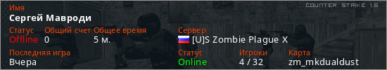 Последний раз был в сети Вчера Игрок с таким ником замечен на 5 серверах