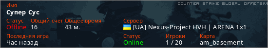 Играет на Counter Strike Global Offensive сервере. Страна: УкраинаПервый раз замечен 14:30 30.01.2026