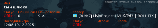 Играет на Counter Strike Global Offensive сервере. Страна: КазахстанПервый раз замечен 08:17 19.12.2025