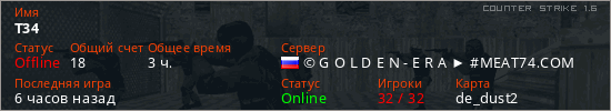 Последний раз был в сети 5 часов назад Игрок с таким ником замечен на 13 серверах