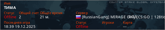 Играет на Counter Strike Global Offensive сервере. Страна: РоссияПервый раз замечен 06:00 16.12.2025