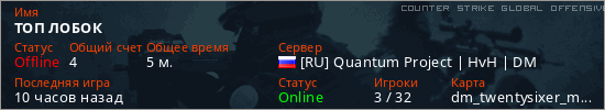 Играет на Counter Strike Global Offensive сервере. Страна: РоссияПервый раз замечен 22:18 22.03.2026