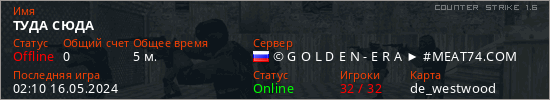 Играет на Counter Strike 1.6 сервере. Страна: РоссияПервый раз замечен 02:04 16.05.2024