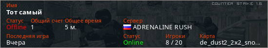 Последний раз был в сети Вчера Игрок с таким ником замечен на 21 сервере