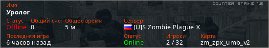 Играет на Counter Strike 1.6 сервере. Страна: РоссияПервый раз замечен 19:07 29.03.2026
