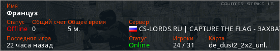 Последний раз был в сети 20 часов назад Игрок с таким ником замечен на 15 серверах
