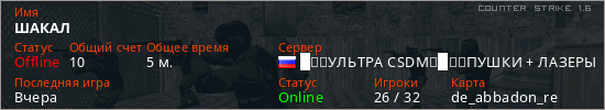 Последний раз был в сети Вчера Игрок с таким ником замечен на 11 серверах