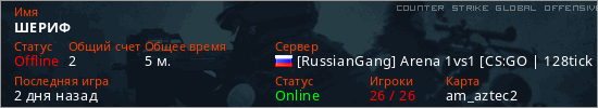 Играет на Counter Strike Global Offensive сервере. Страна: РоссияПервый раз замечен 14:04 20.02.2026