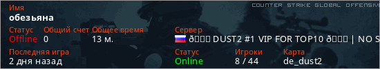 Последний раз был в сети 2 дня назад Игрок с таким ником замечен на 22 серверах