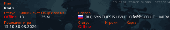 Играет на Counter Strike Global Offensive сервере. Страна: РоссияПервый раз замечен 20:04 19.03.2026