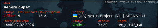 Играет на Counter Strike Global Offensive сервере. Страна: УкраинаПервый раз замечен 14:02 07.02.2026