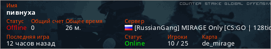 Играет на Counter Strike Global Offensive сервере. Страна: РоссияПервый раз замечен 22:20 12.01.2026