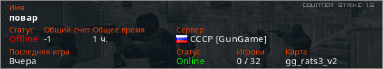 Последний раз был в сети Вчера Игрок с таким ником замечен на 9 серверах