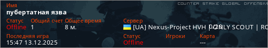 Играет на Counter Strike Global Offensive сервере. Страна: УкраинаПервый раз замечен 15:18 13.12.2025