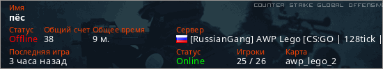 Играет на Counter Strike Global Offensive сервере. Страна: РоссияПервый раз замечен 13:06 10.03.2026