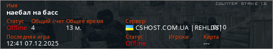 Играет на Counter Strike 1.6 сервере. Страна: УкраинаПервый раз замечен 11:44 07.12.2025