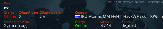 Играет на Counter Strike Global Offensive сервере. Страна: РоссияПервый раз замечен 10:57 26.02.2026