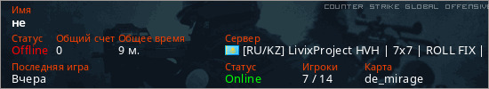 Играет на Counter Strike Global Offensive сервере. Страна: КазахстанПервый раз замечен 17:45 06.02.2026