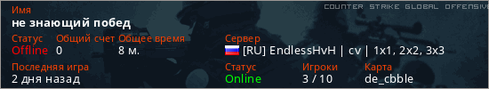 Играет на Counter Strike Global Offensive сервере. Страна: РоссияПервый раз замечен 04:53 03.12.2025