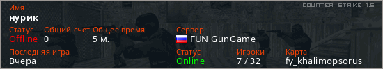 Последний раз был в сети Вчера Игрок с таким ником замечен на 21 сервере