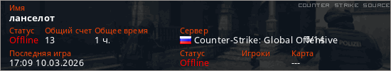 Играет на Counter Strike Source сервере. Страна: РоссияПервый раз замечен 17:50 07.02.2026