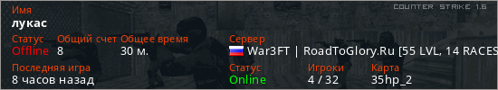 Последний раз был в сети 6 часов назад Игрок с таким ником замечен на 3 серверах