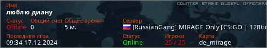 Играет на Counter Strike Global Offensive сервере. Страна: РоссияПервый раз замечен 09:24 17.12.2024