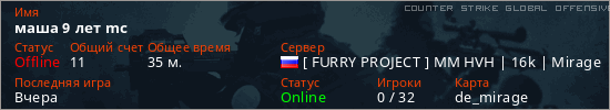 Играет на Counter Strike Global Offensive сервере. Страна: РоссияПервый раз замечен 15:48 22.03.2026