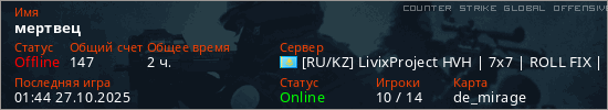 Играет на Counter Strike Global Offensive сервере. Страна: КазахстанПервый раз замечен 11:39 09.02.2025