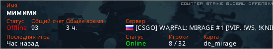 Играет на Counter Strike Global Offensive сервере. Страна: РоссияПервый раз замечен 17:07 02.10.2025