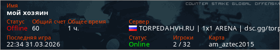 Играет на Counter Strike Global Offensive сервере. Страна: РоссияПервый раз замечен 10:02 24.03.2026