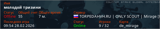 Играет на Counter Strike Global Offensive сервере. Страна: РоссияПервый раз замечен 09:25 28.02.2026