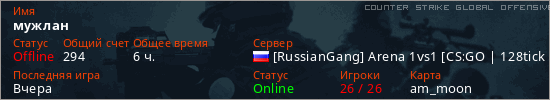 Играет на Counter Strike Global Offensive сервере. Страна: РоссияПервый раз замечен 17:49 09.02.2025