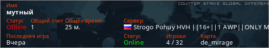 Играет на Counter Strike Global Offensive сервере. Страна: РоссияПервый раз замечен 17:21 18.12.2025