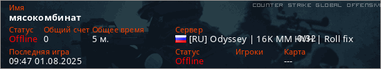 Играет на Counter Strike Global Offensive сервере. Страна: РоссияПервый раз замечен 09:00 01.08.2025