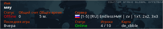 Играет на Counter Strike Global Offensive сервере. Страна: РоссияПервый раз замечен 20:01 04.12.2025
