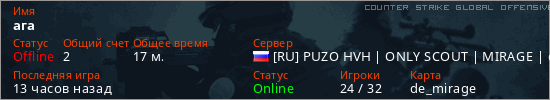 Играет на Counter Strike Global Offensive сервере. Страна: РоссияПервый раз замечен 12:07 17.02.2026
