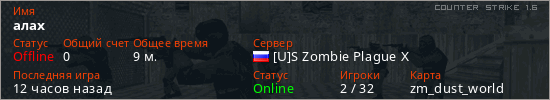 Последний раз был в сети 8 часов назад Игрок с таким ником замечен на 12 серверах