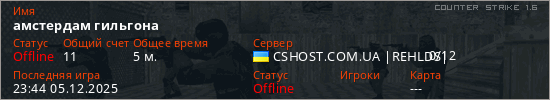 Играет на Counter Strike 1.6 сервере. Страна: УкраинаПервый раз замечен 23:40 05.12.2025