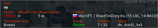 Играет на Counter Strike 1.6 сервере. Страна: РоссияПервый раз замечен 11:59 25.03.2026