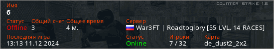 Играет на Counter Strike 1.6 сервере. Страна: РоссияПервый раз замечен 13:09 11.12.2024
