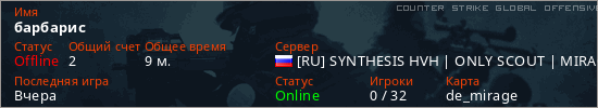 Играет на Counter Strike Global Offensive сервере. Страна: РоссияПервый раз замечен 03:18 19.03.2026