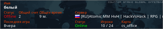 Играет на Counter Strike Global Offensive сервере. Страна: РоссияПервый раз замечен 10:40 04.02.2026