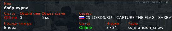 Последний раз был в сети Вчера Игрок с таким ником замечен на 15 серверах